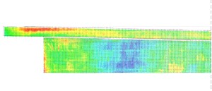 Deviation map created from the point cloud and formatted to show deviations from a theoretical plane.