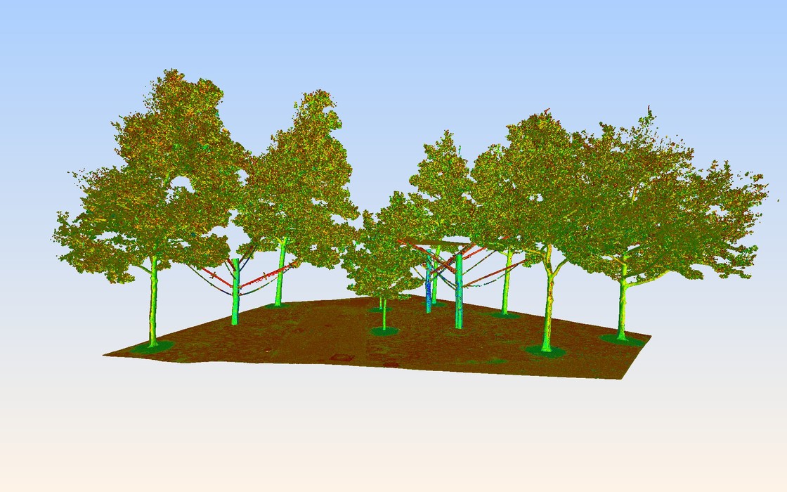 GPRS 3D laser scanned the trunk and limbs of an existing tree in Boulder, Colorado. Architecture students at the University of Colorado used laser scan technology to design TREExOFFICE, an outdoor workspace built around an American Linden tree in a park on campus. The space offers a conference table, six desks, WIFI, and a platform for people to work, sit, think, converse, speak, or perform. GPRS created a 3D mesh of the tree to aid in the cutting-edge design and prefabrication of the office space.