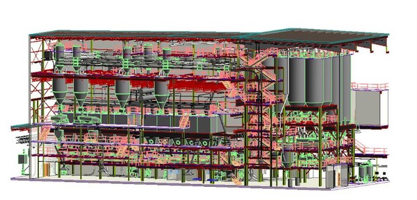 Challenge: No as built plans existed for the facility. The plant was complex, capturing the existing spatial data of the conduit and piping in a high level of detail was important to the plant engineers. Also, there were silos and other pieces of large equipment that would be difficult to measure precisely using traditional or manual measuring techniques.